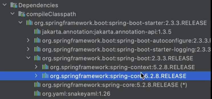 지금 보면, 의존관계가 spring-boot-starter 만 딱 쓴다고 되어있죠.