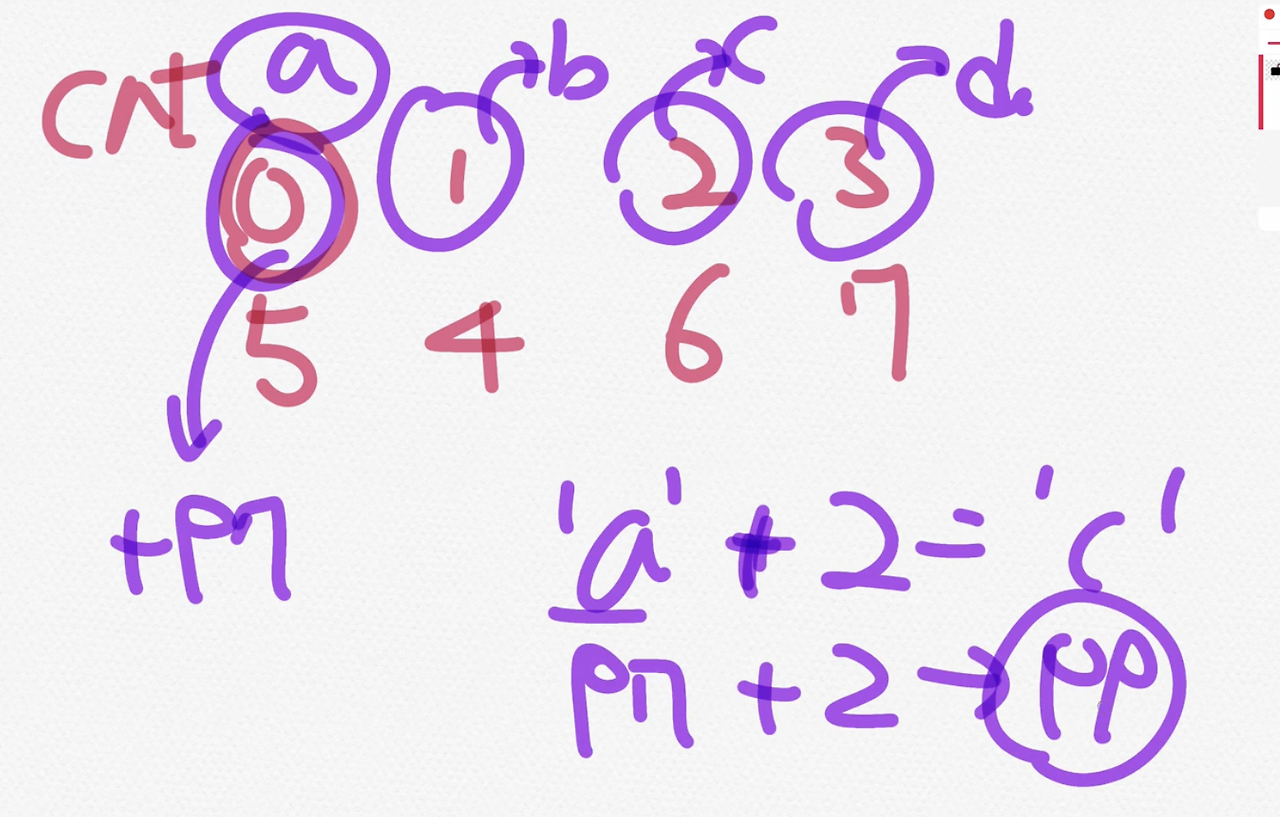 왜냐면 a는 97이고 a + 2는 ASCII 코드로 99이니까, 99을 ASCII 코드 문자로 나타내면 c입니다.