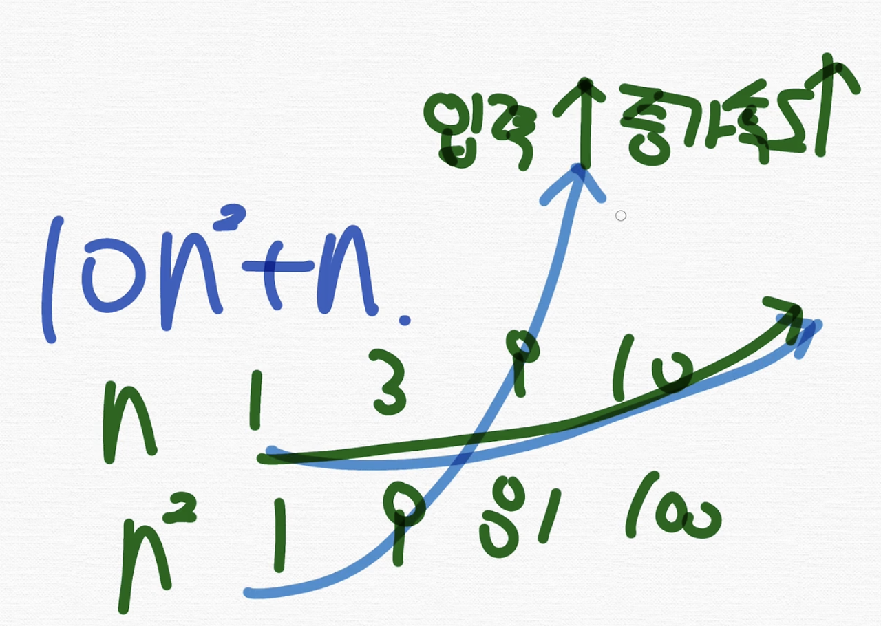 n의 증가 속도보다 n^2의 증가 속도가 훨씬 더 빠르죠?