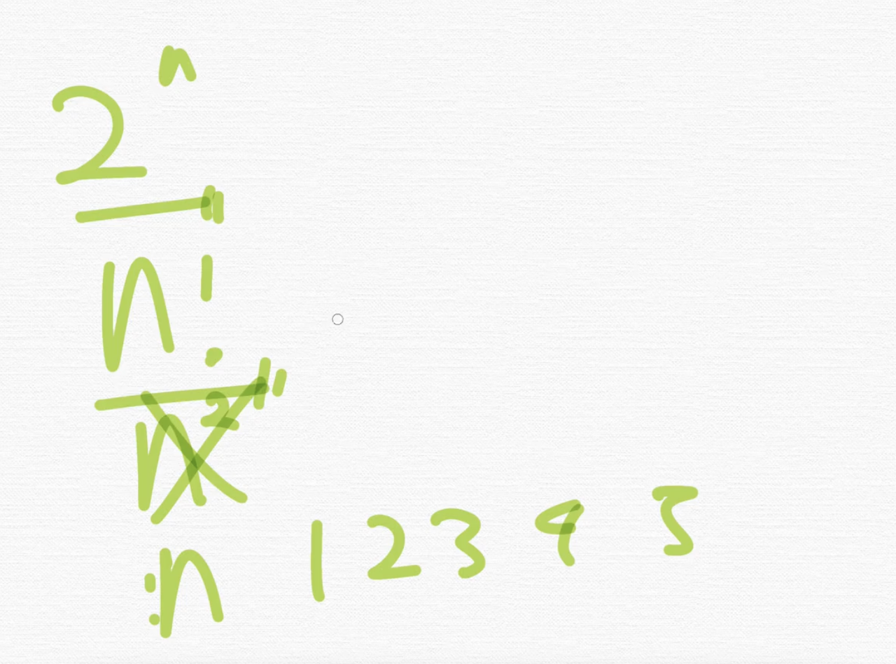 근데 이것보다 더 큰 게 있어요. 2의 n승이랑 n! 이건데, 제가 예시를 한번 들어볼게요.