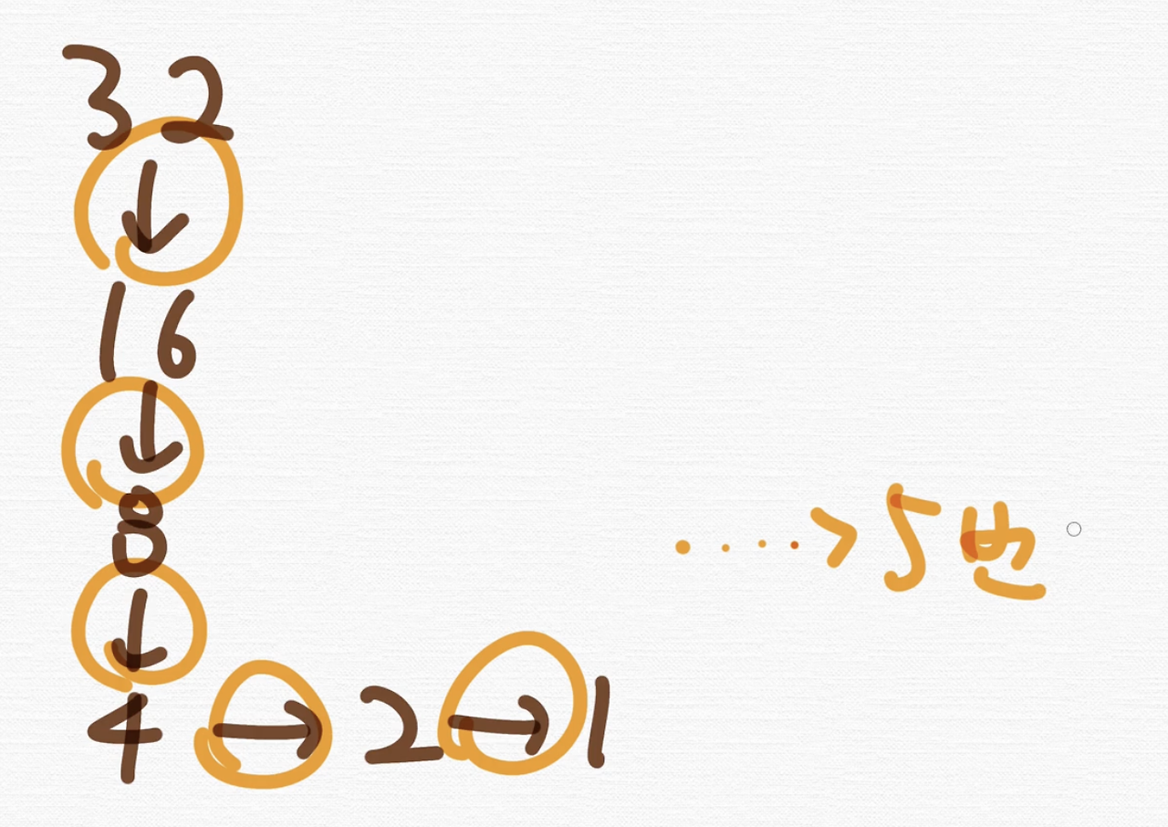 n이 32일 때, 6이 나오고 n이 16일 때 5가 나왔죠.