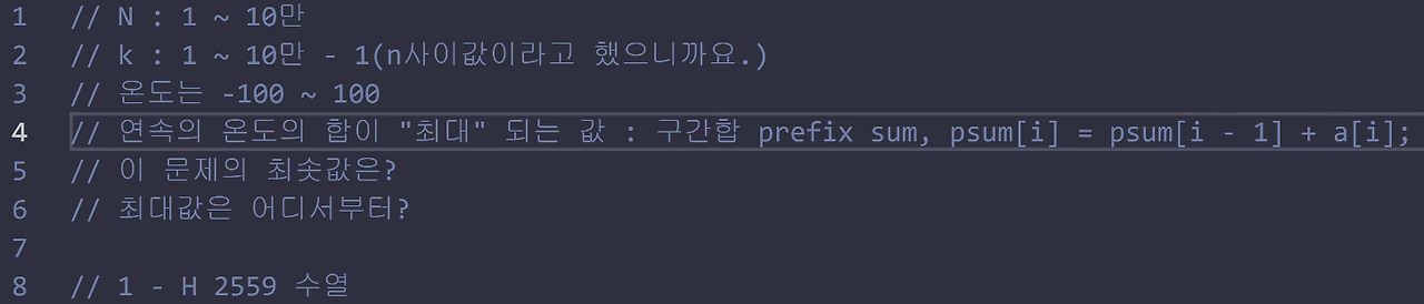 자 1-H 백준 2559 수열 문제를 풀어 보도록 할게요.
