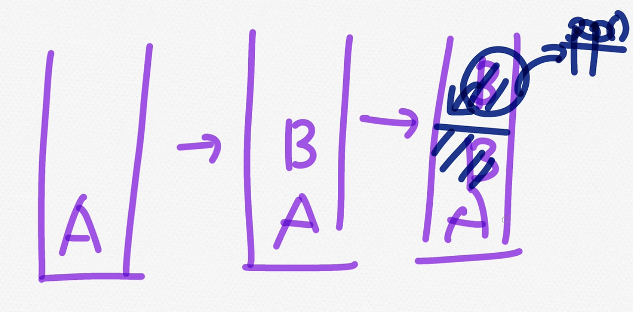 그 다음에 B가 들어오고, B가 또 들어와요. 그 때 폭발해야 되는 겁니다.