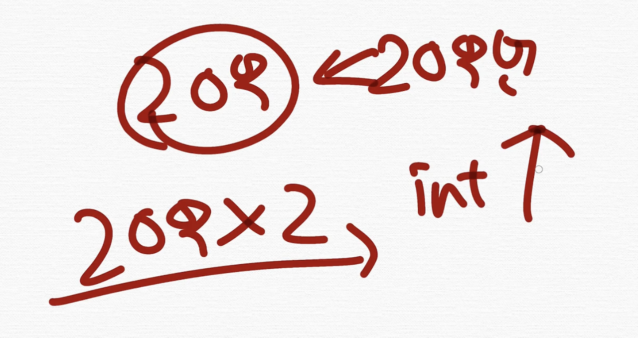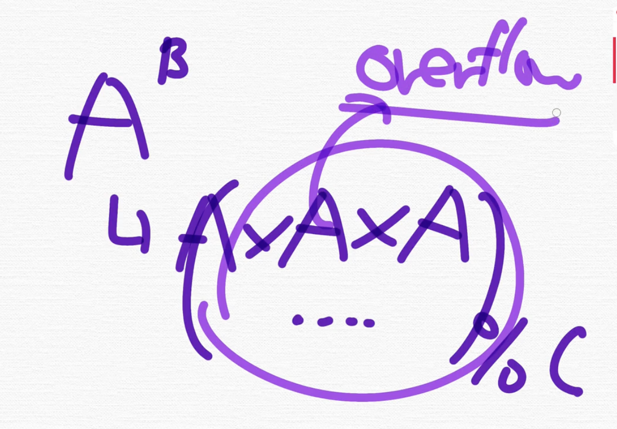 20억을 최대, 최대치로 계산했을 때 20억을 20억번 곱해야 되는 거예요. 그런데 20억 곱하기 2만 해도 int의 범위를 벗어나죠.