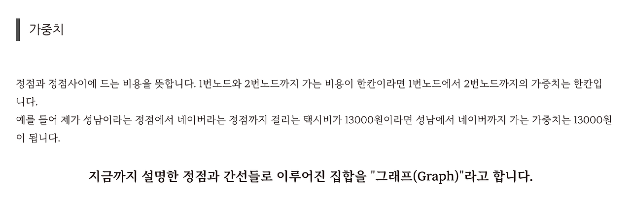 가중치는 정점과 정점 사이에 드는 비용을 뜻해요.
