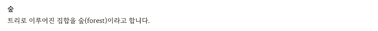 숲은 뭐냐면 트리로 이루어진 집합을 숲이라고 해요.