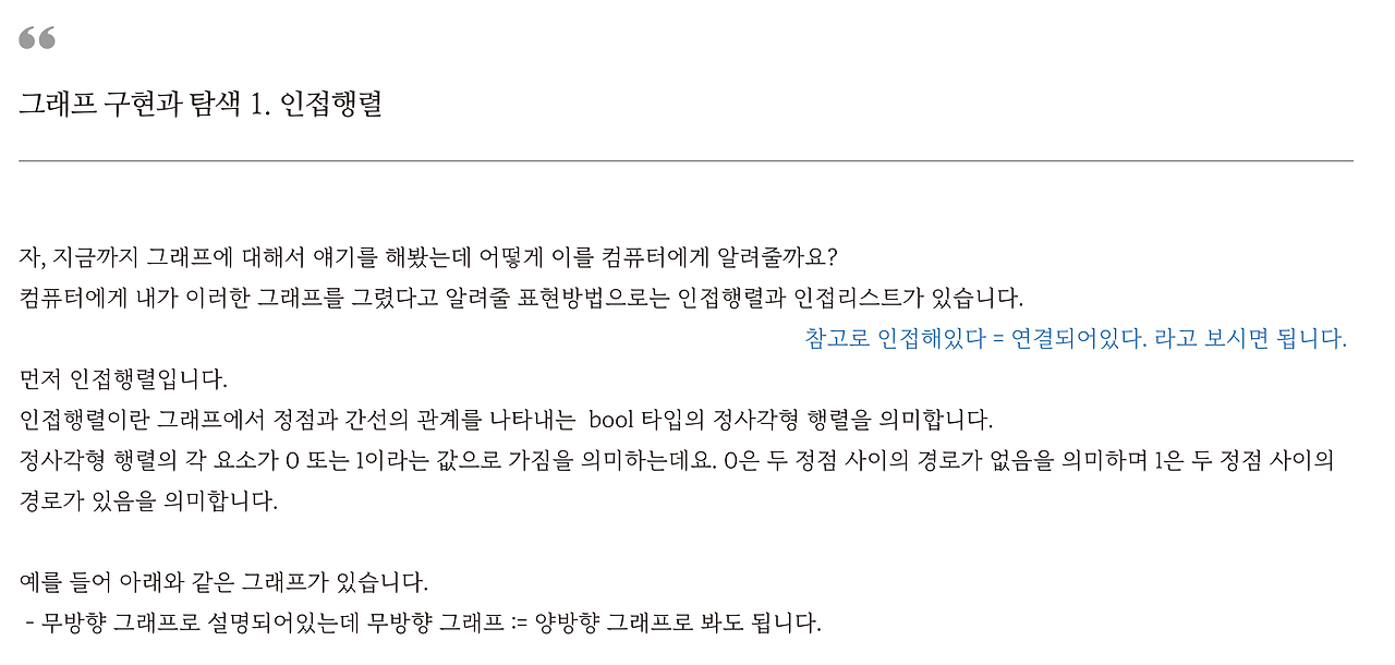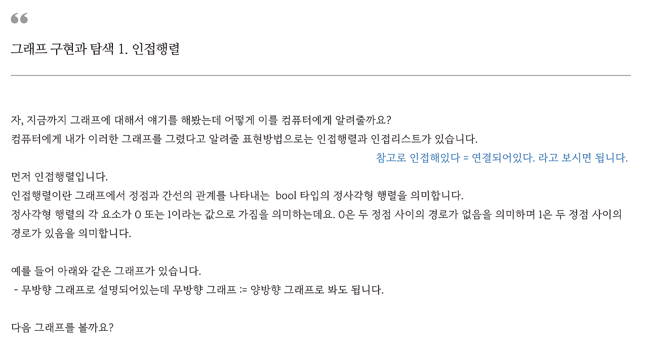 우리가 지금까지 인접행렬, 그리고 인접행렬의 개념, 그리고 인접행렬을 코드로 구현하는 것까지 얘기를 해봤습니다.