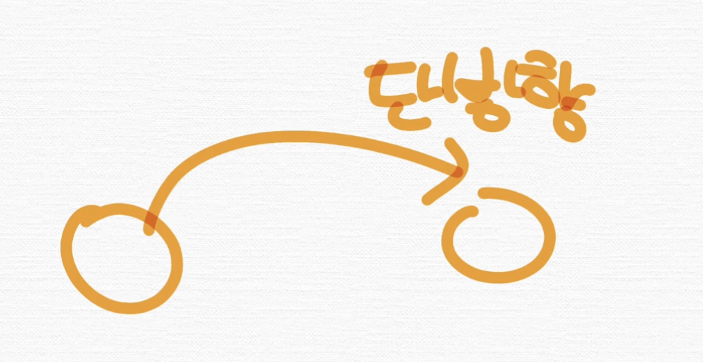그 전에 한 개 짚고 넘어갈 게 있는데, 뭐냐면 우리가 앞서서 단방향 간선에 대해서 배웠죠?