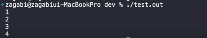 이렇게 해서 1, 2, 3, 4가 출력이 될 겁니다. 출력을 해보면,