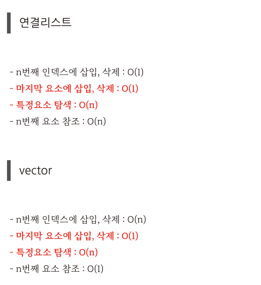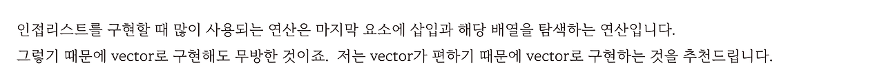 연결리스트로 구현하든, vector로 구현하든 시간 복잡도는 동일하니까 그냥 우리에게 더 익숙한 vector를 쓰는 거예요. 그리고 n번째 요소 참조에서 vector가 더 빠르기 때문에 쓰는 것도 있습니다.