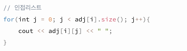 인접 행렬에선 a[i][j]에서의 j는 to 정점이었는데, 인접 리스트에서의 j는 to의 의미가 아니라 그저 인덱스죠.