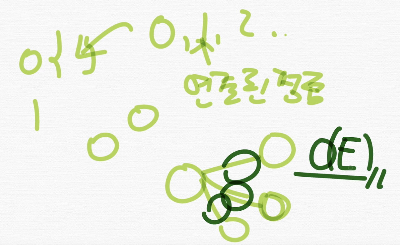 아까 설명을 했는데 이렇게 연결된 정점들만 집어넣기 때문에 간선의 개수만큼 확인을 하니까 O(E)가 아닌가요? 라고 할 수가 있어요.