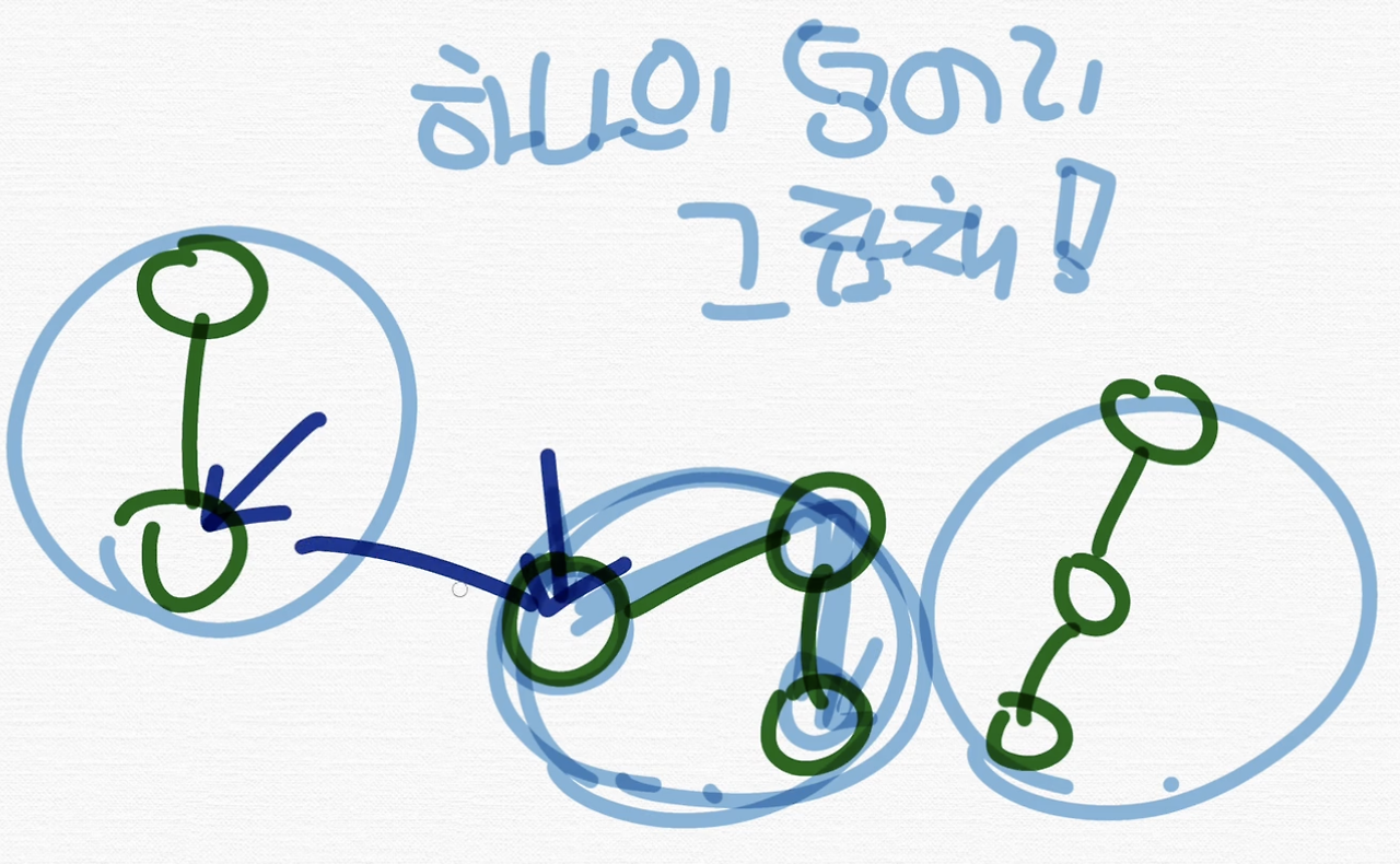 자, 다시 Connected Component 정의를 외쳐볼게요. Connected Component는 연결된 하위 그래프를 말하구요. 연결된 하나의 덩어리에요.