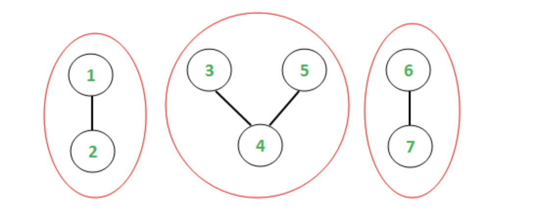 그러니까 지금 보시는 것처럼 1번과 2번이 서로 연결되어 있고 3, 4, 5번이 서로 연결되어 있고 6번, 7번은 서로 연결되어 있죠. 뭔가 이렇게 덩어리 세개로 나눠질 것 같다 라고 보시면 되죠.