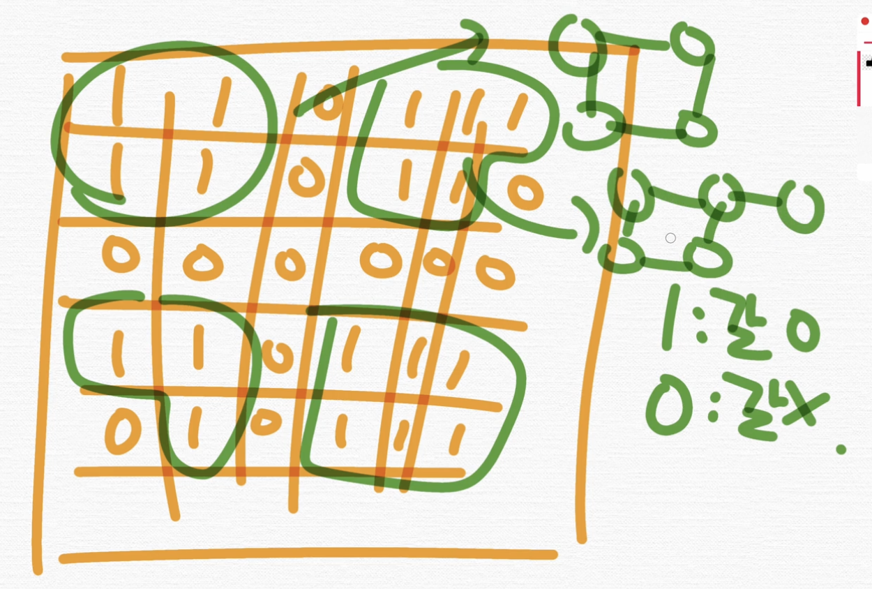 이거는 총 몇 개의 conneceted component는 라고 할까요? 1은 갈 수 있음. 0은 갈 수 없음이에요.