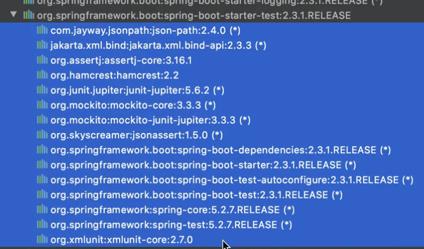 그래서 우리는 spring-boot-starter-web만 필요하지만, spring-boot-starter-web은 자기한테 필요한 것들을 또 의존하고 있다. 그럼 걔네들을 다 땡겨오는 것이다.