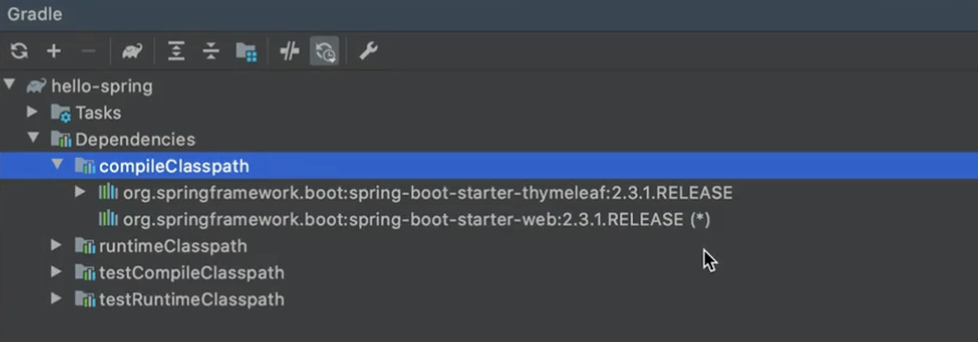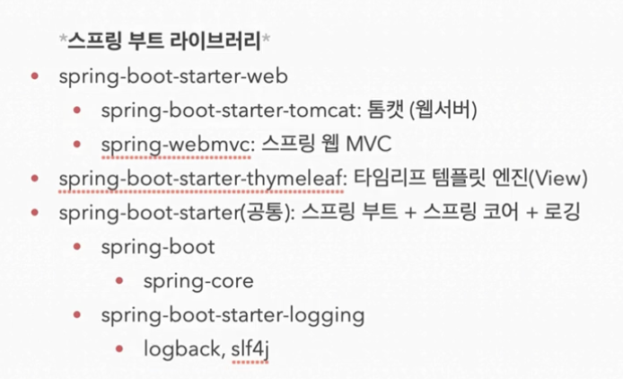 스프링 부트와 관련된 라이브러리를 쓰면, 스프링 코어까지 다 땡겨서 스프링과 관련된 게 다 세팅이 돼서 돌아간다고 이해하면 된다.