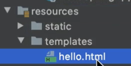 이 resources 폴더에 있는 templates의 {ViewName} 이 리턴값인 hello로 바뀐다. 그래서 templates 폴더 밑에 있는 hello.html이 열리게 된다.