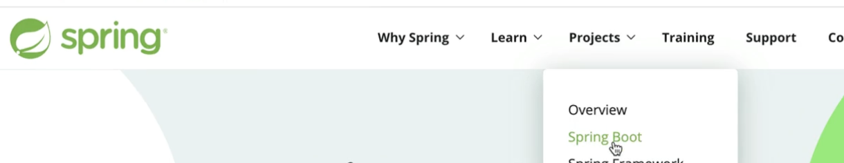 그래서, "어 웰컴 페이지 어떻게 하지??" 하면, 일단 spring.io 에 들어가서 Projects의 Spring Boot를 클릭하면 된다.