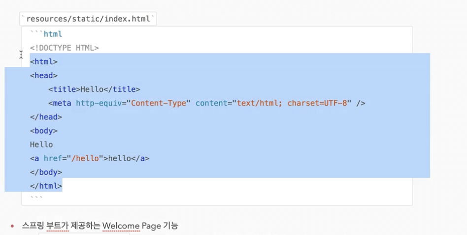 스프링 부트는 resouces라는 폴더에 있는 static에다가 index.html을 넣어주면,