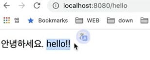 "hello"는 아까 우리가 작성했던 hello.html을 의미한다. 여기보면 return 값인 "hello"가