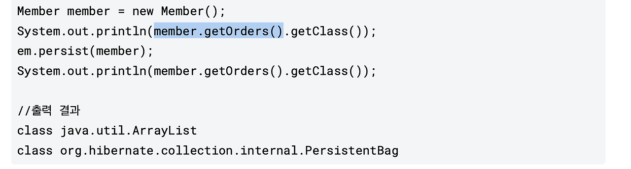 그 다음에 다시 System.out.println(member.getOrders().getClass());으로 찍어보시면,