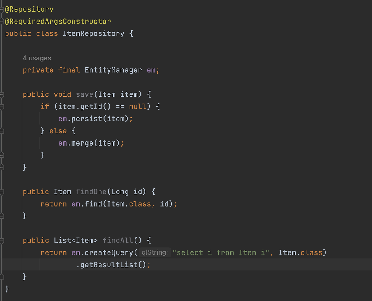 이렇게 ItemRepository를 만드시구요.
