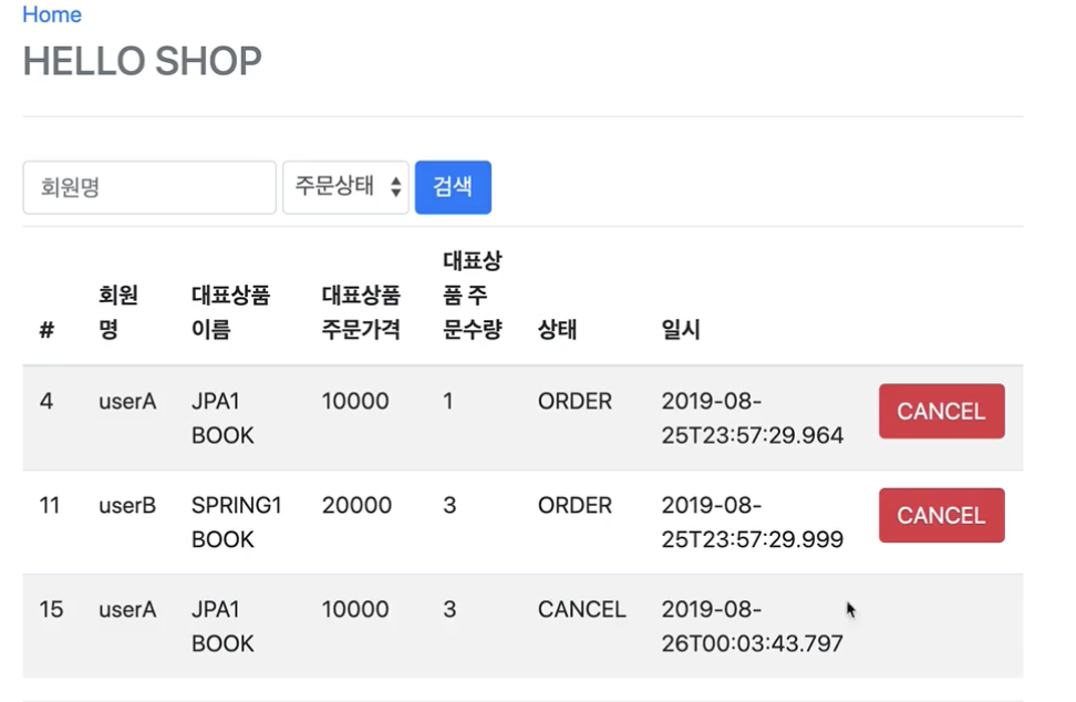 자 주문 상태별로 이렇게 검색, 조회도 할 수 있어야 되고요.