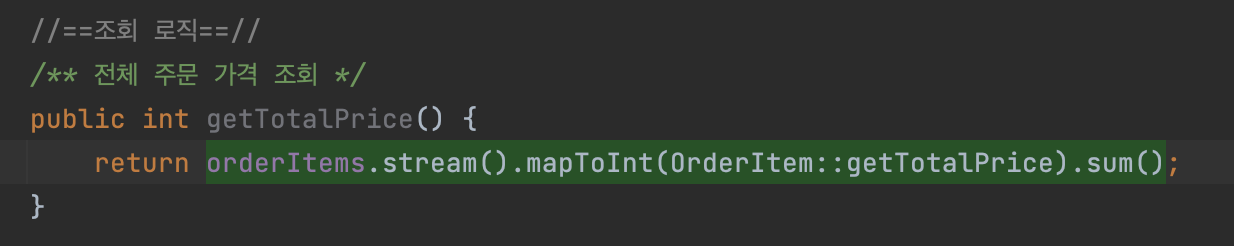 내가 주문한 전체 가격은 현재 나한테 정보가 없고 orderItem들을 다 더하면 되거든요.