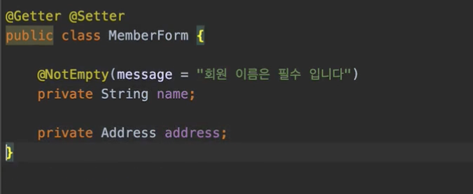 그리고 Member 엔티티에다가 Validation을 어떻게 할 건가요? 여기에다가도 @NotEmpty 써야하는데 이러면 점점 지저분해진단 말이에요.