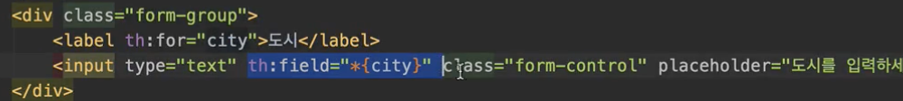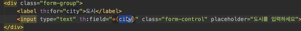 그리고 도시는 input type이 text가 아니고 th:field라고 되어 있죠.