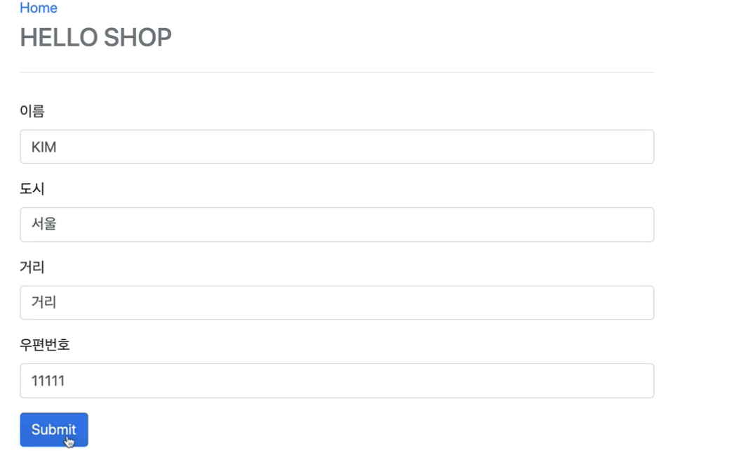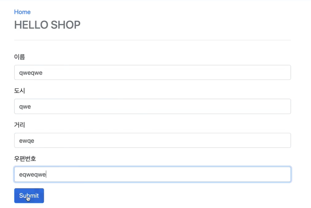 그래서 결과적으로 text에 field가 name, city, street, zipcode를 다 하면 이 form 데이터가