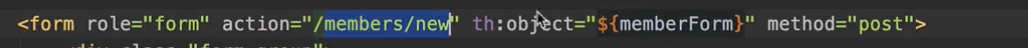 이 action은 /members/new로 가고 그 다음에 method가 post로 되어 있습니다.