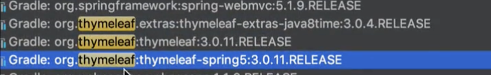 그래서 지금 라이브러리에 뭐가 있냐면 저희가 처음에 타임리프 스프링 부터 스타터 타임리프를 받았죠. 거기서 또 뭐가 있냐면 타임리프도 있는데, 추가로 thymeleaf-spring 이라는 게 있어요. 그래서 이게 스프링이랑 인티그레이션이 정말 강하게 되어있거든요.