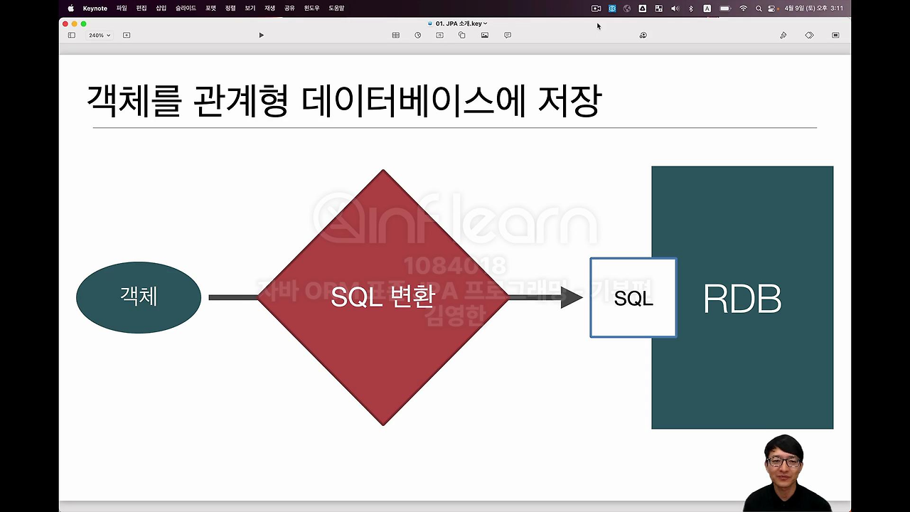 그래서 굉장히 많은 사람들이 객체를 Java 컬렉션에 저장하듯이, 컬렉션에 저장하고 빼고 하는 건 굉장히 단순하잖아요. 근데 이거를 DB에다가 넣었다 뺐다 하는 순간 쿼리를 다 짜야되고 불일치가 발생하고 막 할 일이 너무 많아지는 거죠.