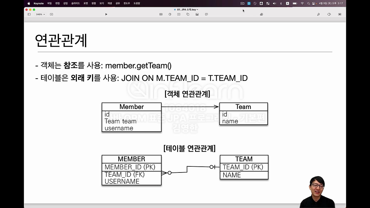 자 그런데 객체인 Member랑 Team을 DB에 보관하는 게 아니라,