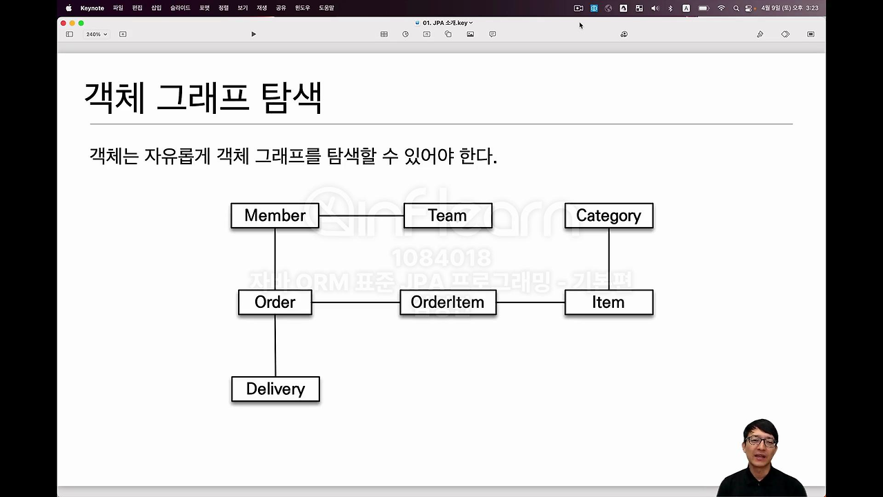 객체는 사실 자유롭게 객체 그래프 라는 걸 탐색할 수 있어야 돼요. 자 뭐냐면, member.getTeam(), member.order, orderItem.item, item.category 이렇게 그냥 참조로 쩜쩜쩜 해서 따라갈 수 있어야 되거든요.