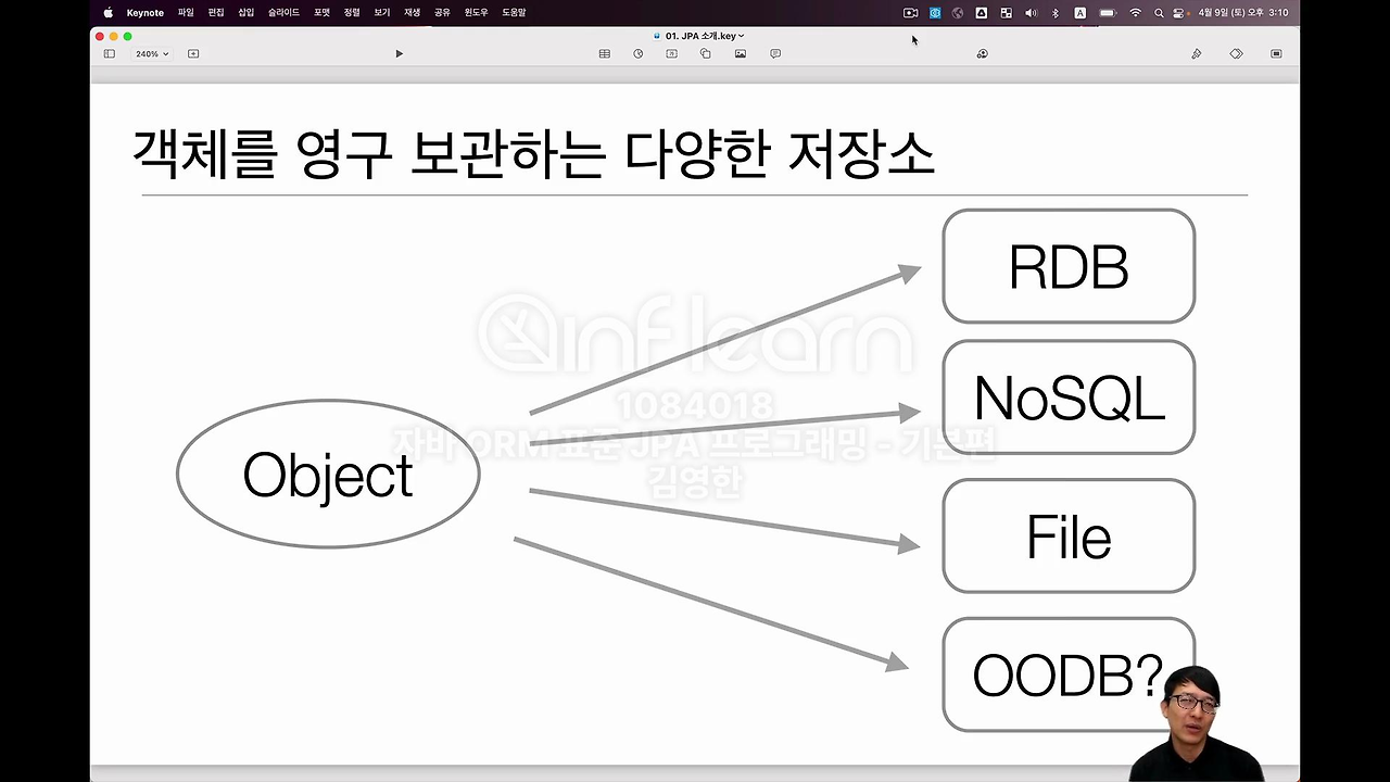 자 그러면서 이 객체와 관계형 데이터베이스의 차이에 대해서 말씀을 해드릴 건데요.