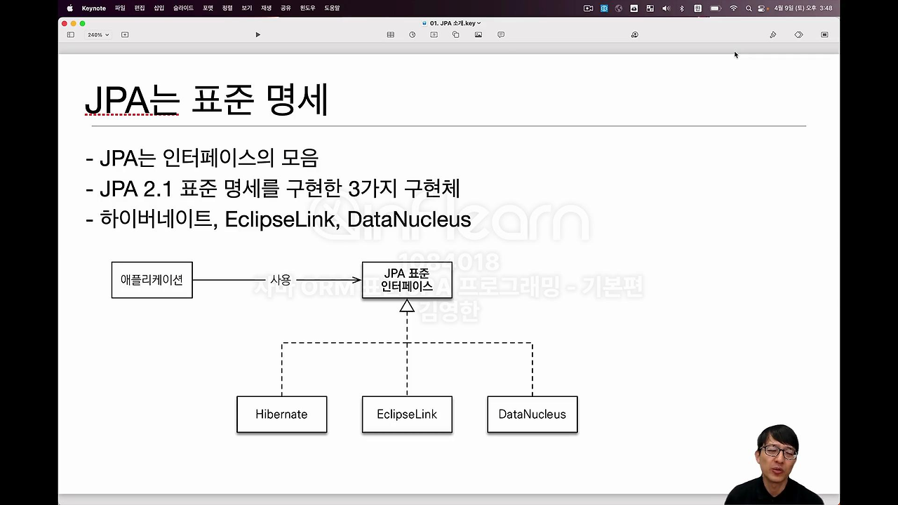 그래서 '우리가 Java 표준 ORM 명세를 새로 만들 건데 네가 좀 해줘' 라고 해서 이제 Hibernate를 거의 복사 붙이기 하는 것처럼 그렇게 만들고 표준으로 만든 거죠.