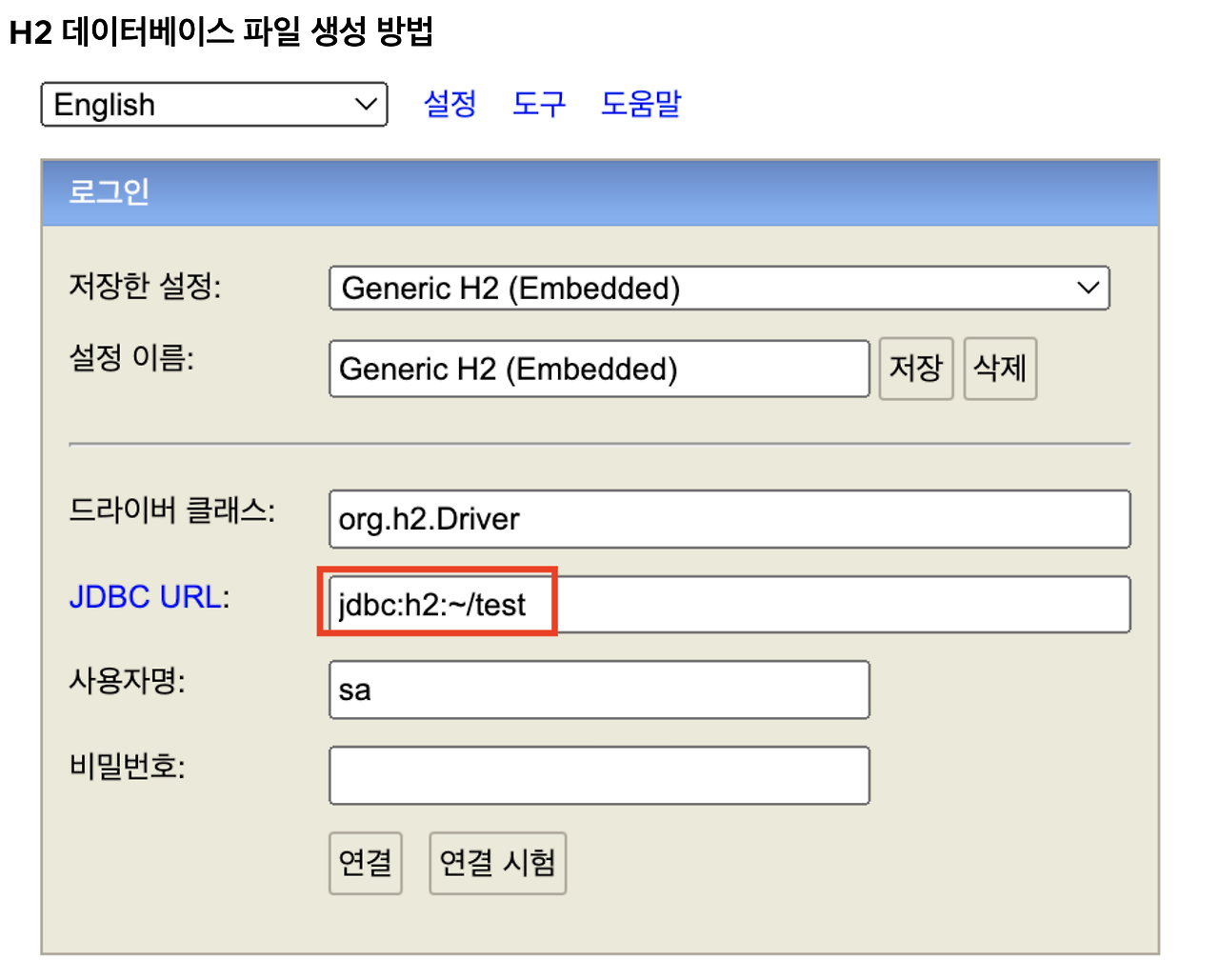 제가 방금 h2 데이터베이스에서 다운받은 버전이랑 꼭 같은 드라이버를 쓰셔야 됩니다.