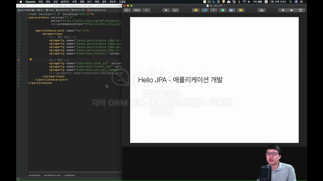 설정한다는건 뭐냐면 이게 정말 Java 처럼 단순하게 hello world를 바로 칠 수 있는게 아니라, jpa를 띄우려면 이제 몇 가지 세팅 파일을 넣어 줘야 됩니다. 그 중에서 첫 번째가 jpa 설정 파일 이라는게 있는데요. 이게 이제 persistence.xml 파일을 만들어서 이 project에 넣어야 됩니다. 이 persistence.xml 파일이 들어갈 위치가 되게 중요한데요 표준 위치가 정해져 있어요.