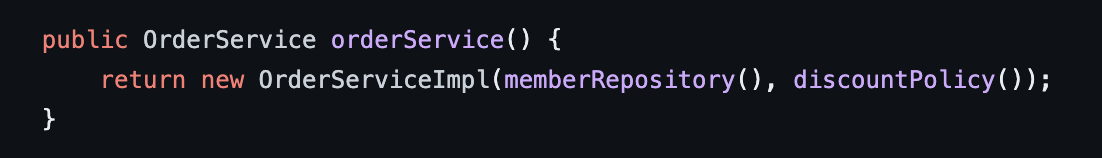 자 그리고 orderService도 보면, "orderServiceImpl를 쓰긴 쓸건데, 현재 내 애플리케이션 memberRepository가 쓰는 걸 가져오고, 현재 내 애플리케이션에서 결정한 discountPolicy 쓰는 걸 가져올거야!" 하면, 알아서 딱 객체가 들어오는 거죠.