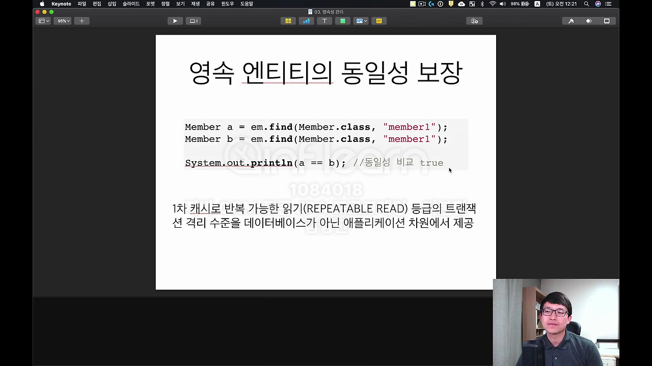 자 그 다음에 영속 엔티티의 동일성 보장, 이건 무슨 얘기냐면