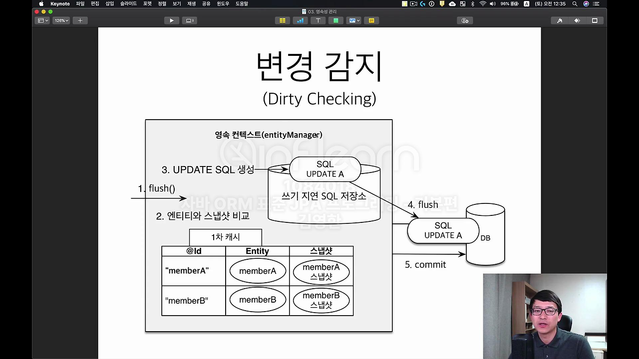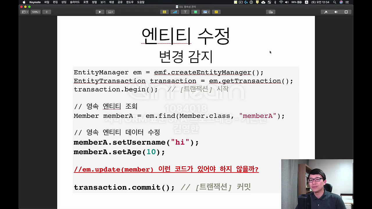 이제 변경 감지라고 Dirty Checking 이렇게 얘기하는데 이거는 제가 바로 코드로 보여드릴게요.