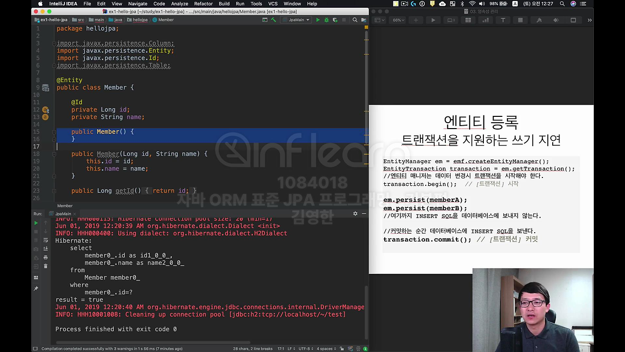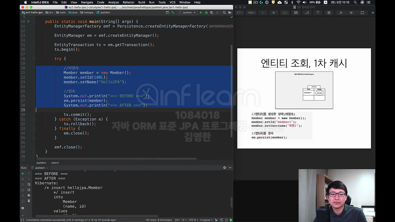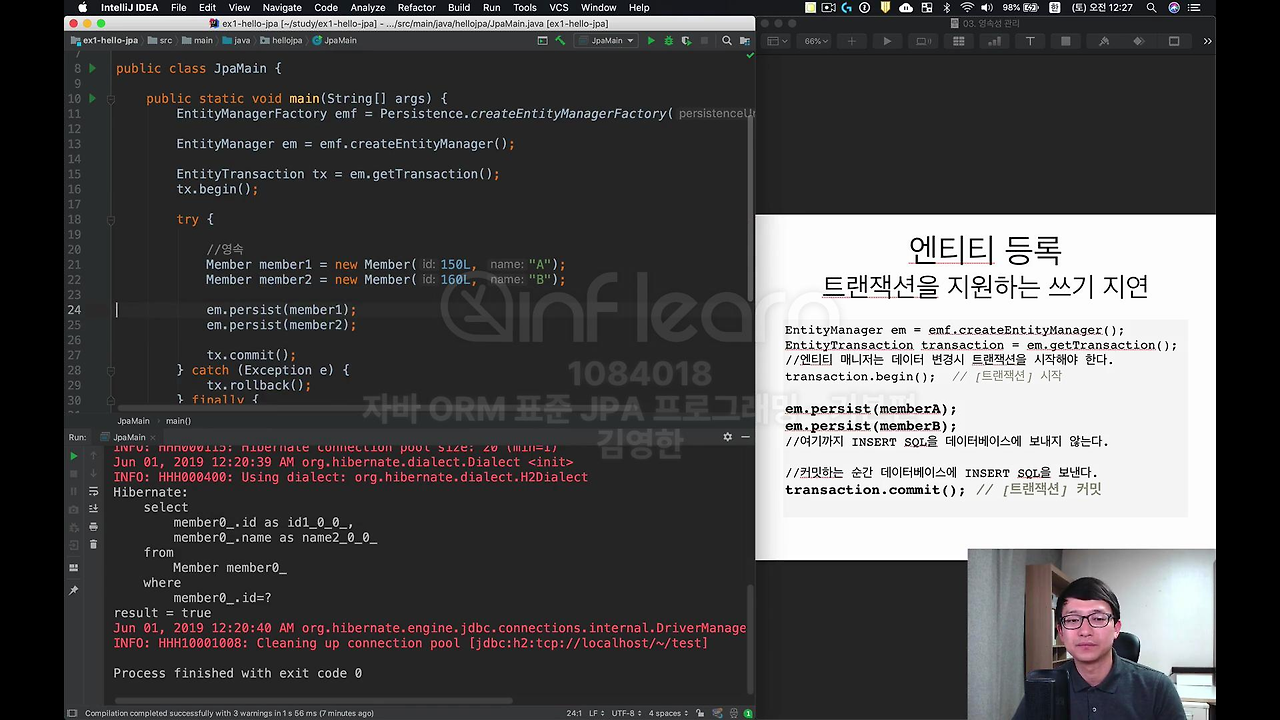 새로 실행하게 되면 이게 다시 다 생성이 되면서 영속성 컨텍스트라는 것도 완전 새로 생성이 되겠죠. 이 엔티티 매니저 생성이 될 때.