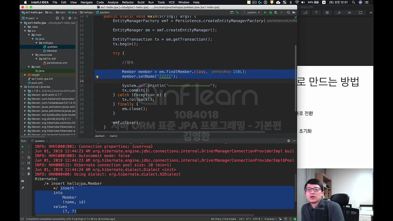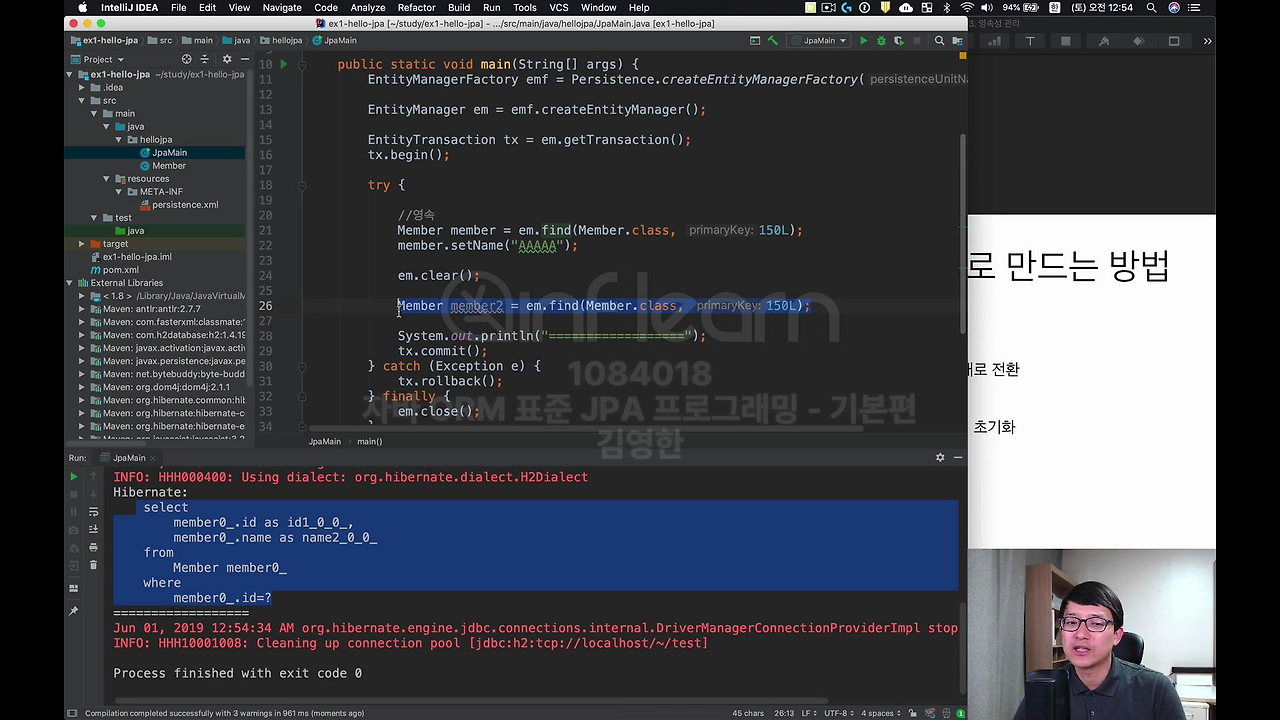 그런데 지금 em.find 해서 member를 가져오면 이 member는 지금 영속 상태에요. 가져올 때 jpa가 보니까 '150번이 없네?' 하고, 이 150번을 db에서 조회해 와서 jpa 영속성 컨텍스트에 올립니다.