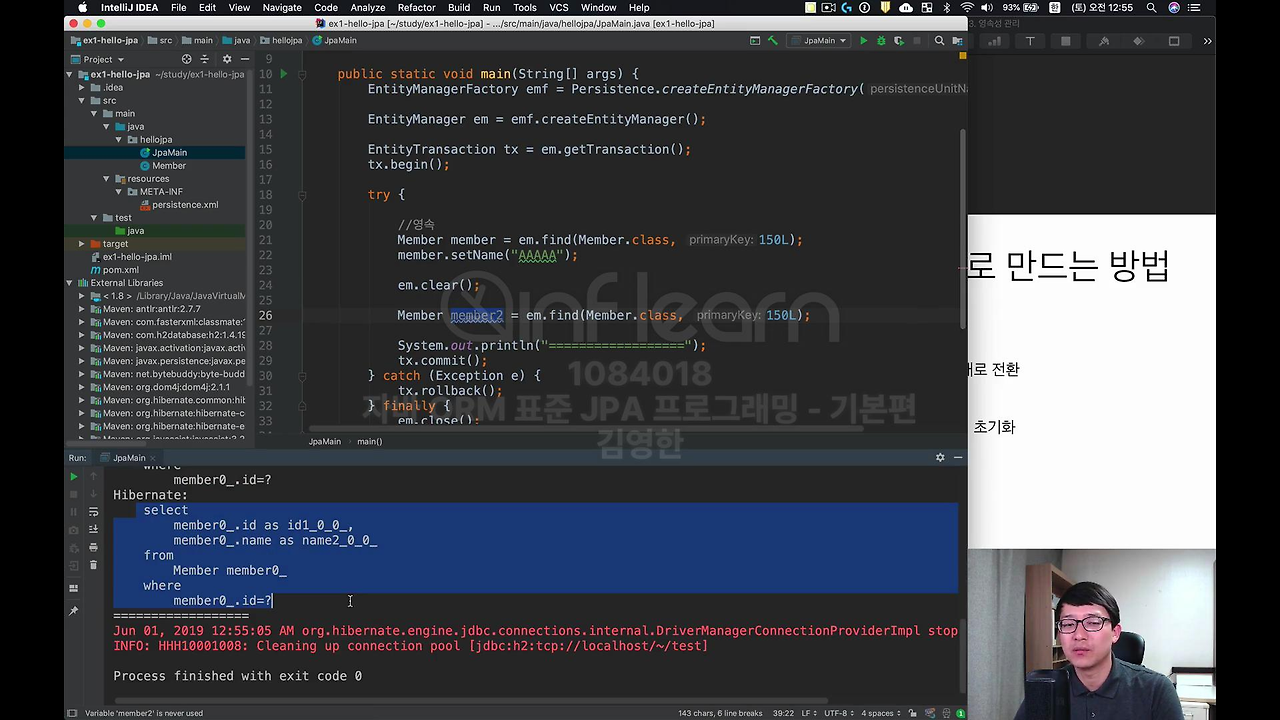 그러니까 똑같은 member를 다시 조회해도 이전에 clear()해서 영속성 컨텍스트가 완전 초기화 되어있기 때문에 다시 처음부터 영속성 컨텍스트 올리게 됩니다.