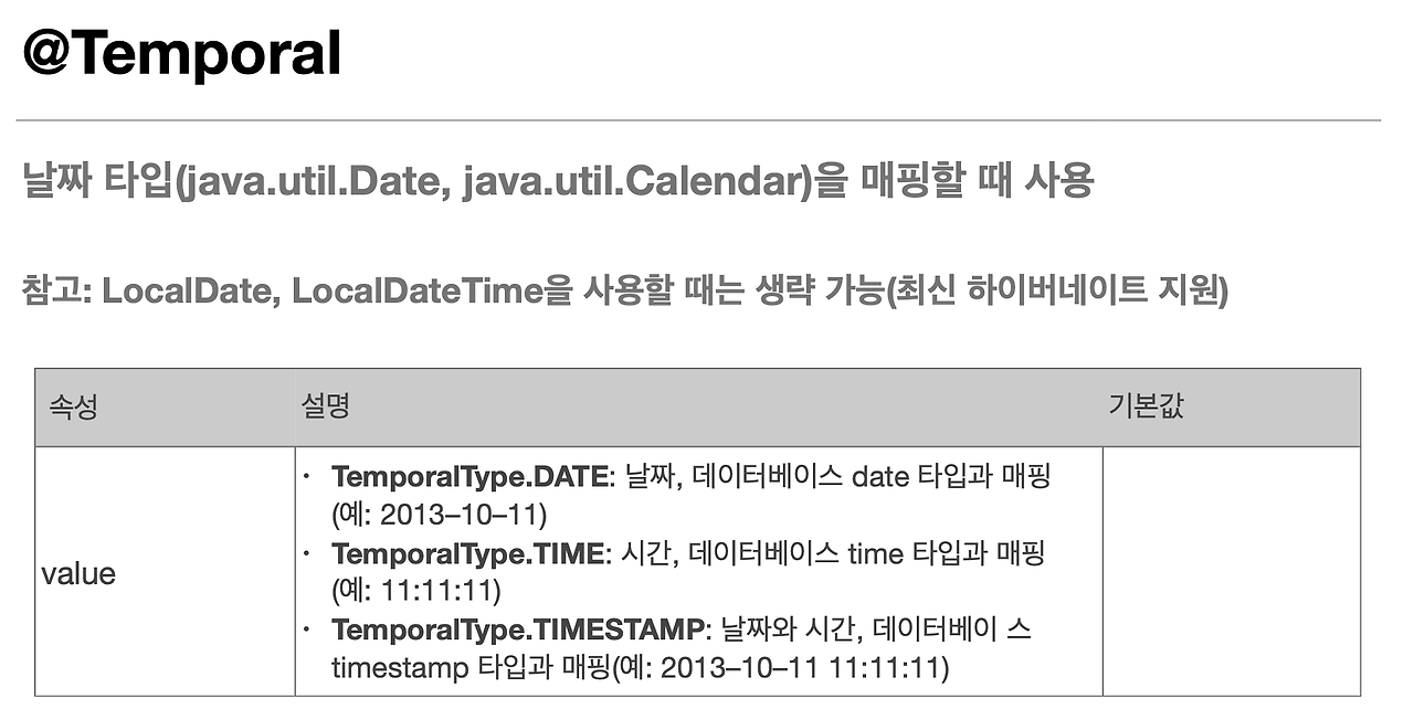 그래서 여기에 TemporalType.TIMESTAMP를 줘야 되구요.