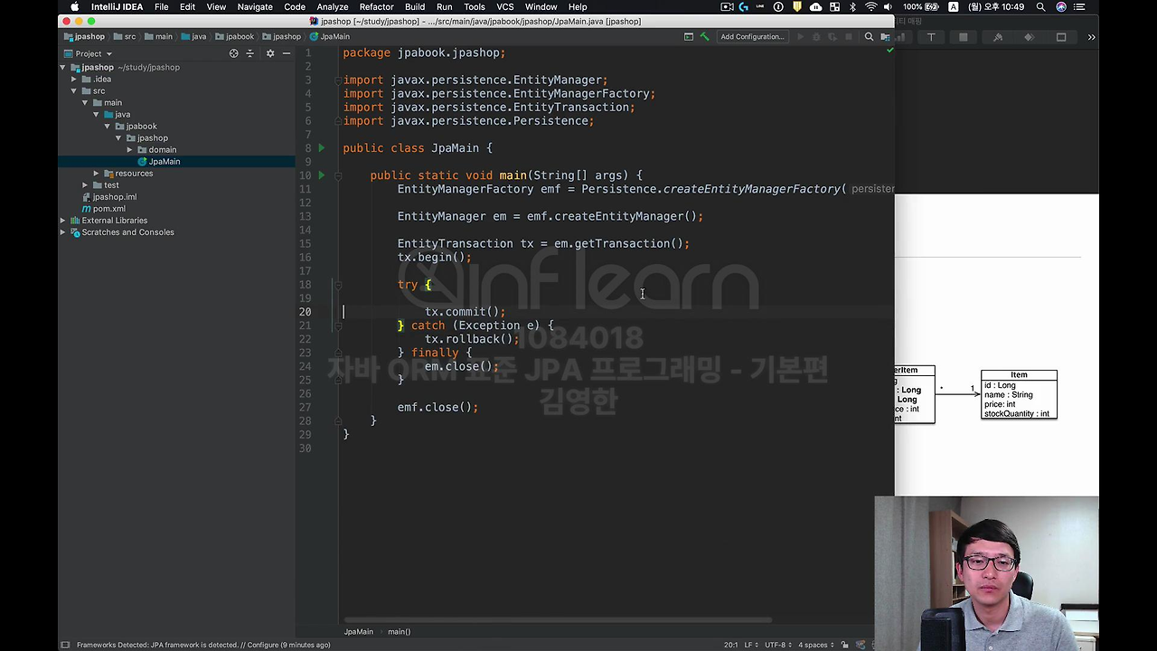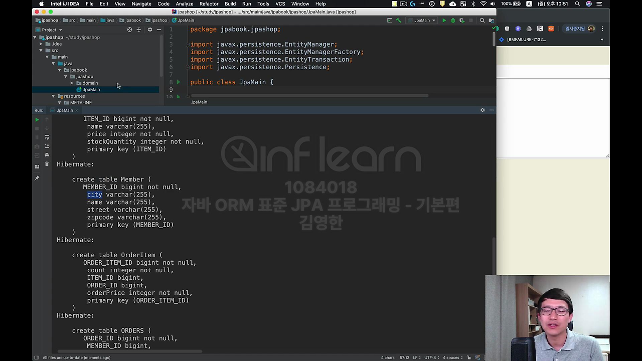 이렇게 하고 제대로 되는지 한번 실행을 해봐야 되니까요. JpaMain을 만들어서 메인 메서드를 실행해볼게요.