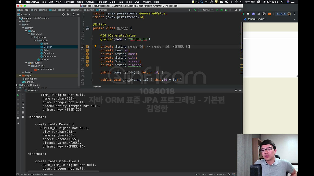 뭐 OrderDate 이런거 있잖아요. 결국엔 여러분이 실제 애플리케이션 운영해서 개발하실 때는 SpringBoot를 쓸텐데 그 SpringBoot를 쓰면 SpringBoot가 Hibernate 설정에서 이 관례를 내가 원하는대로 오버라이딩 할 수 있어요.